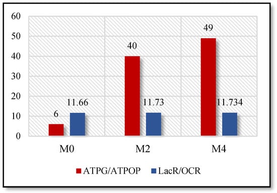 ATPG/ATPOP and LacR/OCR results for non-metastatic (M0) and metastatic cases (M2 and M4).