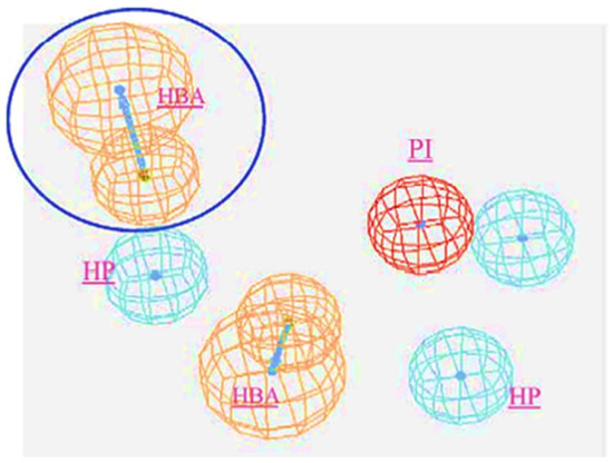 Statistically best-feature hypothesis (HBA: Hydrogen Bond Acceptor; HP: Hydrophopic; PI: Positive Ionizable). The best fit with HBA interactions is highlighted with circle. Reprinted with permission from Ref. [107]. Copyright 2004, Elsvier.