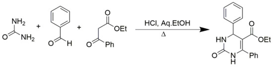 Synthesis of DHPMs using benzoylacetic ester as one of the reactants.