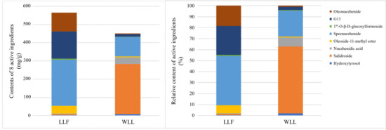 6]. According to the TCM theory, LLF can strengthen the function of nourishing the liver and kidney after wine-steaming; thus, wine-steamed Ligustri Lucidi Fructus (WLL) is usually used in the clinic. The results showed that the contents of specnuezhenide, G13, oleonuezhenide, neonuezhenide, oleuropein, and nuezhenoside decreased after wine-steaming, while the content of salidroside, tyrosol, and hydroxytyrosol increased [