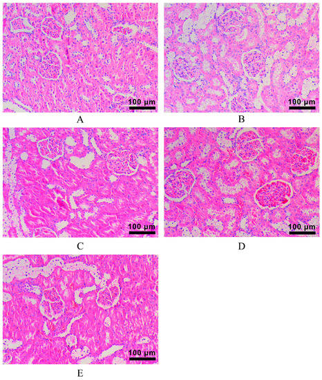 Kidney tissue was collected and stored in 10% paraformaldehyde immediately. Paraffin sections of the kidney were used for hematoxylin and eosin (H&E) staining to observe pathological changes of the kidney tissue.