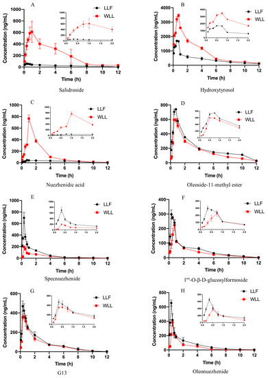 d-glucosylformoside, specnuezhenide, G13, and oleonuezhenide decreased in WLL compared with LLF. The pharmacokinetic characteristic parameters of the AUC