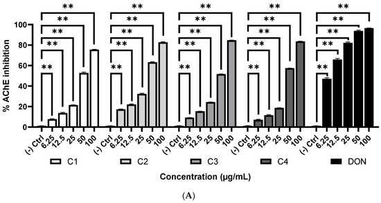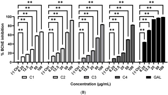 4.7. Anti-Acetylcholinesterase (Anti-AChE) and Anti-butyrylcholinesterase Activity (Anti-BChE) Assay