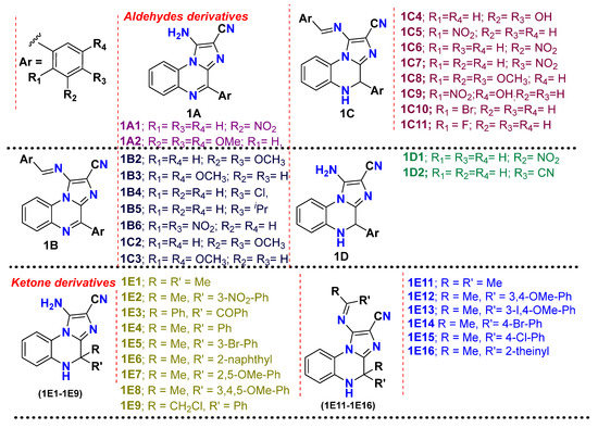 Selected chemical structures (34) belonging to the imidazo[1,2-a]quinoxaline category for the present work.