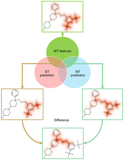 Taken together, these results provided an intuitive explanation for the ability of ST models to differentiate between ST- or MT-CPDs and random compounds. MT- and corresponding ST-CPDs shared structural features that distinguished them from random compounds and were detected by ML. Furthermore, the results also explained why MT-CPDs were successfully distinguished from corresponding ST-CPDs. This was the case because MT- and corresponding ST-CPDs shared a subset of the features common to MT-CPDs. The additional features shared by MT-CPDs, then, determined their correct prediction using MT models.
