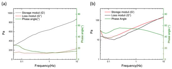 Rheological features of (a) CMC-0 h crosslinked hydrogel and (b) CMC-1 h hydrogel.