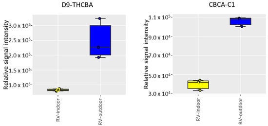 Unusual cannabinoids detected in more abundance in RV-outdoor compared to RV-indoor using LC-MS analysis (n = 3 independent samples per group).