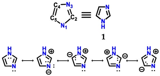 Structure of imidazole 1 with its respective numbering and resonance hybrids.