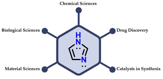 Among the nitrogen-based heterocyclic compounds, imidazole 1 plays an important role in humans. It is included in chemical sciences, biological sciences and materials science, and used as a catalyst in compound synthesis and the process of developing new drugs (Figure 3) [3,4,5,6].