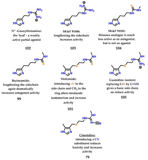 - Ganellin, R. 1980 Award in medicinal chemistry. Medicinal chemistry and dynamic structure-activity analysis in the discovery of drugs acting at histamine H2 receptors. J. Med. Chem. 1981, 24, 913–920. [Google Scholar] [CrossRef] [PubMed]