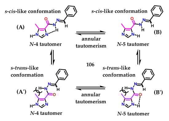 The presence of the N-1 nitrogen in the imidazole 1 structure makes it tautomer, which becomes evident in non-symmetrically substituted compounds, such as methyl imidazole 9 (Figure 6) [9]. This curious feature of imidazole chemistry means that simply writing “4-methylimidazole” would be incorrect, considering the rapid tautomeric equilibrium with the 5-methylimidazole structure [9,17].