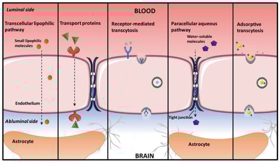 An overview of transport mechanisms across the blood–brain barrier (BBB), adapted from [43], Springer, 2020.