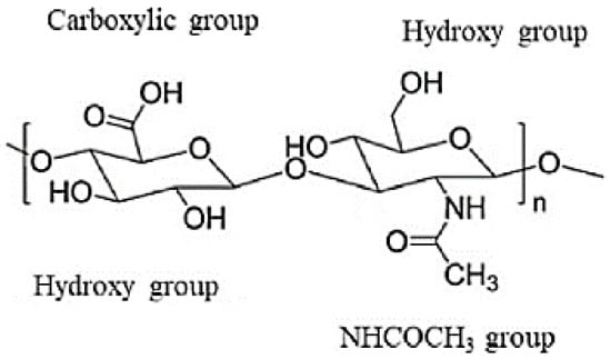 Hyaluronic acid (HA), a biocompatible, biodegradable, and chemically adaptable molecule, has received more and more interest in the biomedical community during the past ten years. The extracellular matrix (ECM), which contains a significant amount of HA, is crucial for preserving cellular homeostasis and interaction [141,142]. Although HA is a naturally occurring substance with favorable cell interactions, low immunogenicity, mild antigenic characteristics, and the ability to be chemically modified, it has poor mechanical qualities, is expensive to produce, and is not very reproducible [143,144]. It has been demonstrated that HA is involved in tissue development, embryonic development, angiogenesis, cell migration, and proliferation. With polar and apolar moieties in the polymer structure, HA is naturally hydrophilic and allows for chemical interaction with a variety of chemical agents (Figure 5). Its molecular weight (MW), which in turn relies on the source, determines its structural, physicochemical, degradable, and biological features [145]. The HA-based polymer has been a terrific idea for the examination of tumors, especially for brain tumors, and is ideal for generating a more biocompatible system indicative of a healthy condition. In the CNS, HA plays a significant role in a variety of cell activities, including cell migration, proliferation, differentiation, and others. Medication thickening, the formation of conjugates when HA and its derivatives are utilized as carriers, sustained release, and improved drug targeting have all been demonstrated [146]. Therefore, this polymer may be a promising option for treating neurodegenerative diseases and brain tumors [147].