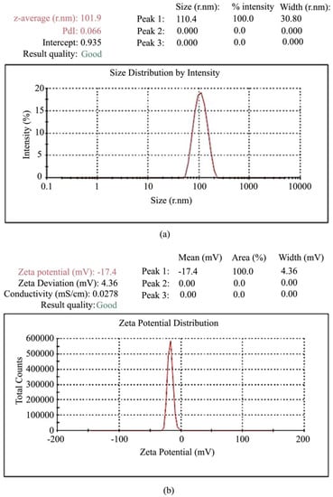 (a) Graph representing the particle size analysis and (b) Zeta potential of the optimized nanoparticles (CGA-NPs), adapted from [168], scientific research, 2020.