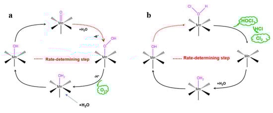 (a) Mechanism of OER catalysis by MnO2; (b) mechanism of ClER catalysis by MnO2.