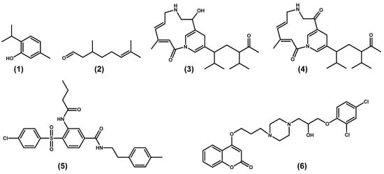 | Thymol | Major component of Thyme oil | Formation of potential hydrogen bonds with some residues Glu161 and Gly169 in the putative RpfF binding pocket; downregulation of rpfF gene; reduction of DSF and BDSF. | Singh et al. [59] |