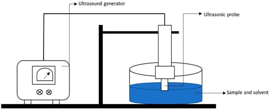 Ultrasonic extraction or ultrasound-assisted extraction (UAE) is based on the principle of acoustic or ultrasonic cavitation. Acoustic coupling occurs from high-power ultrasonic waves that are coupled using a probe-type ultrasonic processor into the slurry, where these travel through the liquid, creating alternating high-pressure or low-pressure cycles (Figure 8). In UAE, mechanical energy generated by ultrasound waves results in cavitation [161]. This achieves complete extraction and yields superior extracts in a very short extraction time in a cost-effective manner. This results in high-quality extracts that are used for food, pharmaceuticals, and supplements [119]. The application of ultrasound in the food industry can be divided into low-intensity high-frequency ultrasound (f > 100 kHz) and high-intensity low-frequency ultrasound (20 kHz ≤ f ≤ 100 kHz). Low-intensity ultrasound does not alter the physical or chemical properties of the material, but high-intensity shock waves generate intense pressure and temperature gradients caused by bubble cavitation, producing a disruption effect within the matrix. Acoustic/ultrasonic cavitation leads to extreme temperatures and heating/cooling rates, pressure differentials, and high shear forces in the medium. When cavitation bubbles implode on the surface of solids, micro-jets and inter-particular collision generate effects such as surface peeling, erosion, particle breakdown, cell disruption, and sonoporation, i.e., the perforation of cell walls and cell membranes. The implosion of cavitation bubbles in liquid media creates micro-mixing and macro-turbulences. UAE has an extraction efficiency of 85 to 97% depending on the type of sample being extracted at a 20–80 °C temperature range within 10–60 min [120]. The nature of the solvent and its characteristics, extraction time, temperature, power, and the presence of gases are all important factors in UAE. An increase in temperature initially improves UAE yield, but as the temperature rises above 45 °C, the yield declines. In UAE, several solvents such as acidified water, alcohols, acetone, and water can be utilized to extract various phytochemicals. Acidified water is preferred for pectin extraction [162]. To be safe and to completely avoid phenolic thermo-degradation, the recommended temperature is less than or equal to 40 °C [163]. The application of UAE for recovering phytochemicals attached to complex matrixes such as algae remains a limitation due to the lack of proper power regulation, resulting in inefficient energy transmission within the extracted vessel [9,162].