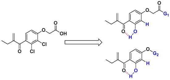 Regarding all these above-mentioned factors, we have considered synthesizing new analogs of EA, by replacing the chlorine at the ortho position of the α, β-unsaturated carbonyl group with a hydroxyl group (to favorize the formation of an intramolecular hydrogen bond) and by removing the chlorine in the meta position. At the same time, the carboxylic acid group should be transformed on either amide (G1) or propoargylic group (G2) which have shown good activities in our previously published works [,,,]. Consequently, the reactivity of the Michael acceptor of EA could be enhanced by the establishment of an intramolecular hydrogen bond between the carbonyl and the hydroxyl group (Figure 1). All the prepared compounds were tested first toward HLC60 cell line, then 7 and 8 compounds have been selected for antiproliferative studies against a panel of tumor cell lines such as human adenocarcinomic epithelial cell line (A549), human breast cancer cell line (MCF7), human prostate cancer cell line (PC3), human glioblastoma (U87-MG), ovarian carcinoma cells (SKOV3), and human colon cancer cell line (HCT116).