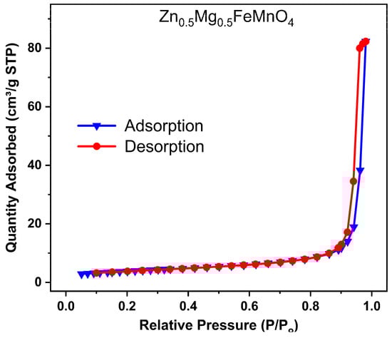 Nitrogen adsorption–desorption isotherm of the synthesized porous Zn0.5Mg0.5FeMnO4 spinel oxide.