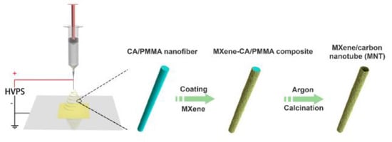 Attanayake et al. [107] have developed 2D Mo2C and Ti3C2 Mxene-based electrocatalysts for CRR. The catalysts exhibit a Faradic efficiency for CO2 to CO of about 90% (Mo2C) and 65% (Ti3C2 Mxene) in acetonitrile using an ionic liquid—1-ethyl-2-methylimidazolium tetrafluoroborate electrolyte. Theoretical studies have revealed that the oxygen vacancies on both MXenes’ surfaces provide an activesites for the catalysis. A novel, two-dimensional Ti3C2Tx MXene/carbon heterostructure was successfully synthesized using a self-sacrificial templating method (Figure 13). This heterostructure demonstrated excellent electrochemical performance with an ultralow overpotential of 1.38 V at 0.2 A·g-1 in Li-CO2 batteries. The design of the parallel-aligned tubular architecture contributed to a high surface area, ensuring efficient CO2 adsorption and lithium carbonate decomposition. In situ and ex situ characterizations, along with density functional theory calculations, supported the enhanced catalytic performance and stability of the heterostructure. Moreover, the tubular architecture’s durability allowed for a long cycle life and facilitated proper interactions among gas, electrolyte, and electrode [108]. MXene-based electrodes offer advantages like high electrical conductivity, tunability, and chemical stability, making them promising materials for various applications. However, they also have limitations, including moisture sensitivity, synthesis complexity, and limited scalability. Ongoing research aims to address these challenges and unlock the full potential of MXenes in a wide range of technologies.
