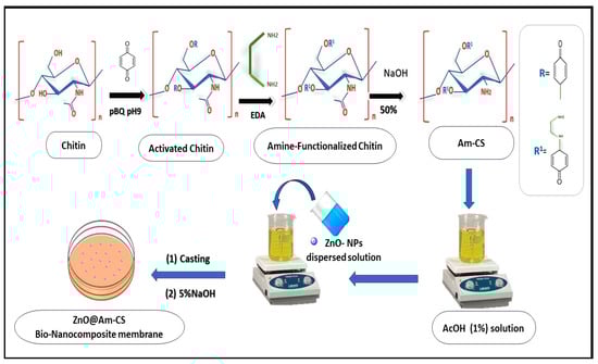 A scheme for the preparation steps of ZnO@Am-CS bio-nanocomposite membrane.