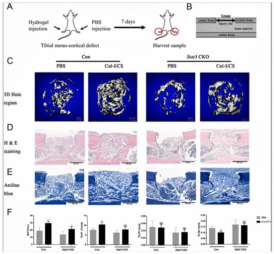 - Lu, J.; Xu, R.; Chen, Y.; Chan, L.; Feng, X.; Lin, L.; Yao, Y.; Hu, X.; Zhang, X. Injectable col-i/cs hydrogel enhances bone regeneration in mice tibial mono-cortical defect with impaired osteogenesis. Mater. Today Commun. 2022, 32, 104070. [Google Scholar] [CrossRef]