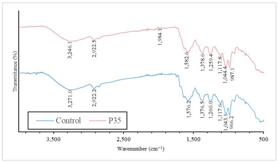 FT-IR spectrum of GCBE (control) and GCBE treated with plasma for 35 min (P35).