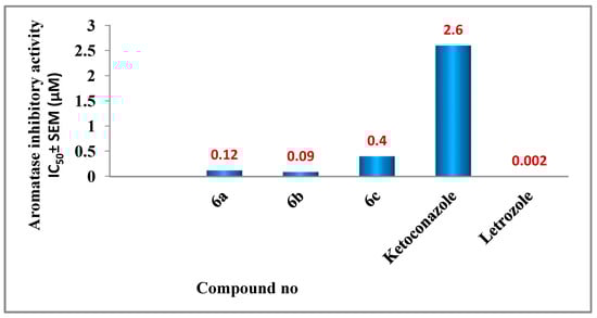 Aromatase inhibitory activity of compounds 6a–c.