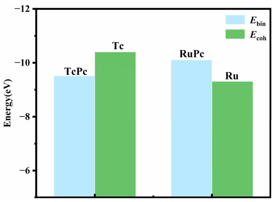 Binding energy (Ebin) of TcPc/RuPc monolayer and cohesive energy (Ecoh) of Tc/Ru bulk.
