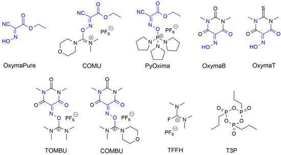 - El-Faham, A.; Albericio, F. COMU: A Third Generation of Uronium-Type Coupling Reagents. J. Pept. Sci. 2010, 16, 6–9. [Google Scholar] [CrossRef]