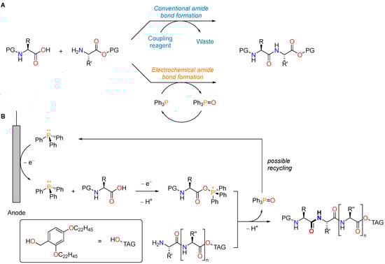 - Nagahara, S.; Okada, Y.; Kitano, Y.; Chiba, K. Biphasic Electrochemical Peptide Synthesis. Chem. Sci. 2021, 12, 12911–12917. [Google Scholar] [CrossRef]
