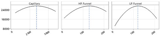 Within the MSSD, an approach was created that optimized the analyte without any matrix, and the predicted values were verified by injecting the spiked urine samples. The results (Figure A3; SaSu− NM; no matrix) indicate the superiority of a matrix-assisted development as it was performed in this study. In another approach, narrower ranges for the investigated ion source variables were applied to the MSSR (Figure A3; SaSu− NR; narrow ranges) leading to a less powerful prediction in which the curvature was not detected and the adjustment from linear to quadratic model was not observed.