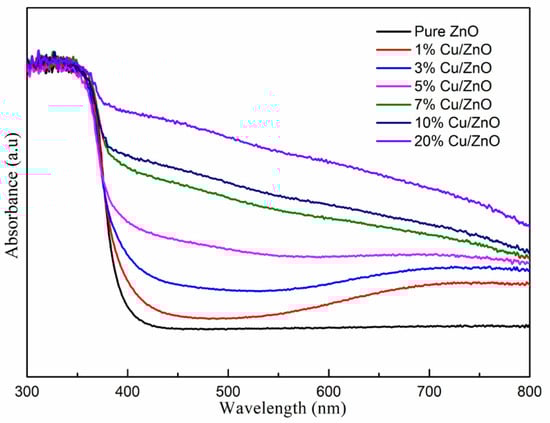 UV-vis absorption spectra of the Cu-ZnO samples.