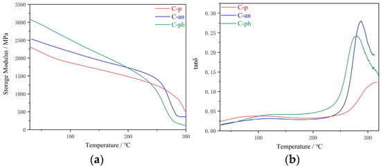 Dynamic mechanical thermal analysis (DMTA) was performed on a Q800 dynamic mechanical analyzer. The measurements were taken under nitrogen in the temperature range of approximately 40–400 °C. A temperature ramp of 5 °C/min was used to determine the storage modulus and damping factor (tan δ) of the material at a frequency of 1 Hz.