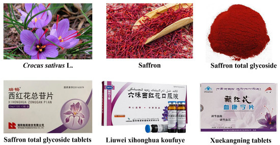 Saffron is a traditional dual-use natural medicine with multiple pharmacological functions planted in China, Iran, Spain, India, and other countries. Saffron can be used not only as a medicine but also as a dye, spice, and condiment, which has been used for thousands of years [10]. Saffron is the dried stigma of Crocus sativus L., and the yield is low. It takes about 20 flowers to obtain 1 g stigma, which is a valuable medicinal material. Saffron is rich in carotenoids, carbohydrates, proteins, anthocyanins, vitamins and minerals, as well as in crocin, picrocrocin, and safranal. Saffron is considered to be an herb with a wealth of health benefits and nutritional value in folk medicine [11,12]. Saffron has various pharmacological activities and shows great application potential in the research of many diseases. Studies have found that it has therapeutic effects on neurodegenerative diseases, depression, digestive system diseases, coronary atherosclerosis, tumors, diabetes, and eye diseases [13]. In addition, the application of saffron in liver diseases was recorded in Jingzhu Materia Medica as a classic Tibetan medicine: “Saffron can be used to treat all liver diseases”. This shows that traditional folk medicine considers saffron to have good liver-protective effects.