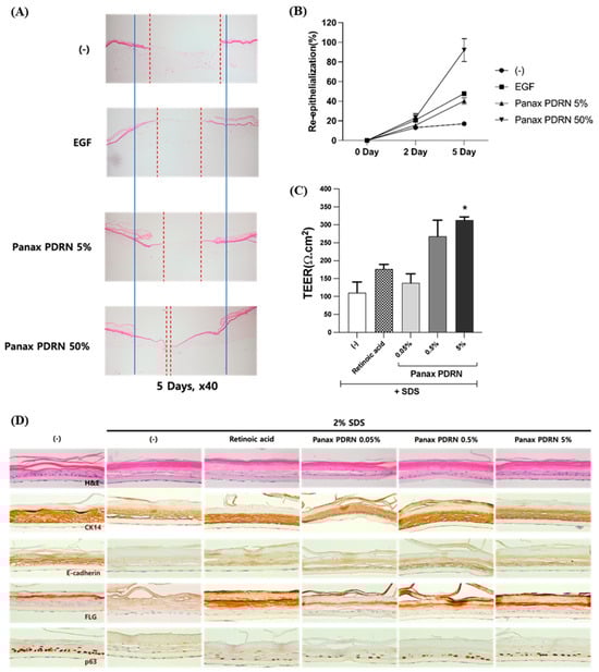 2.4. Analysis of Wound Healing Effect of Panax PDRN in 3D Skin Model