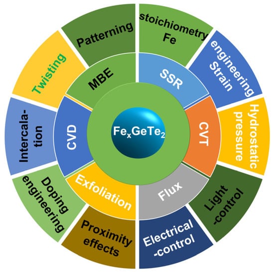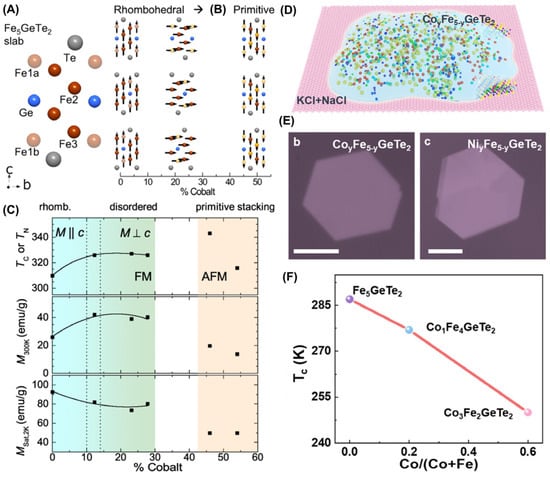 - Zhu, W.X.; Song, C.; Wang, Q.; Bai, H.; Yin, S.Q.; Pan, F. Anomalous displacement reaction for synthesizing above-room-temperature and air-stable vdw ferromagnet PtTe2Ge1/3. Natl. Sci. Rev. 2022, 10, nwac173. [Google Scholar] [CrossRef]