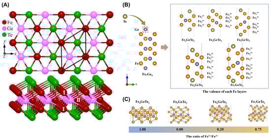 - Ly, T.T.; Park, J.; Kim, K.; Ahn, H.B.; Lee, N.J.; Kim, K.; Park, T.E.; Duvjir, G.; Lam, N.H.; Jang, K.; et al. Direct observation of Fe-Ge ordering in Fe5−XGeTe2 crystals and resultant helimagnetism. Adv. Funct. Mater. 2021, 31, 2009758. [Google Scholar] [CrossRef]