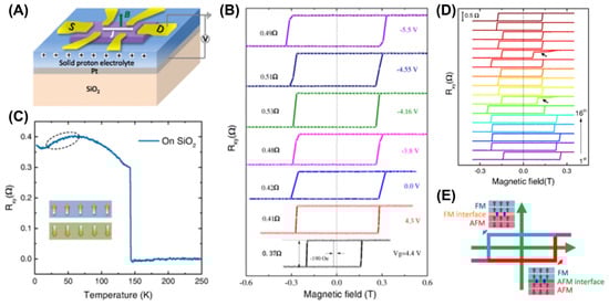 - Chiba, D.; Fukami, S.; Shimamura, K.; Ishiwata, N.; Kobayashi, K.; Ono, T. Electrical control of the ferromagnetic phase transition in cobalt at room temperature. Nat. Mater. 2011, 10, 853–856. [Google Scholar] [CrossRef] [PubMed]