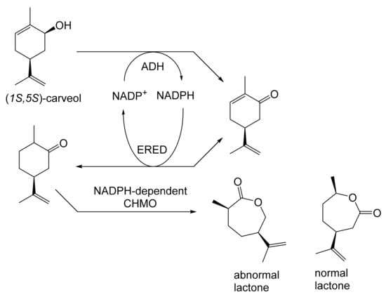 - Hilker, I.; Alphand, V.; Wohlgemuth, R.; Furstoss, R. Microbial transformations 56. Preparative scale asymmetric Baeyer-Villiger oxidation using a highly productive ‘two-in-one’ resin-based in situ SFPR concept. Adv. Synth. Catal. 2004, 346, 203–214. [Google Scholar] [CrossRef]