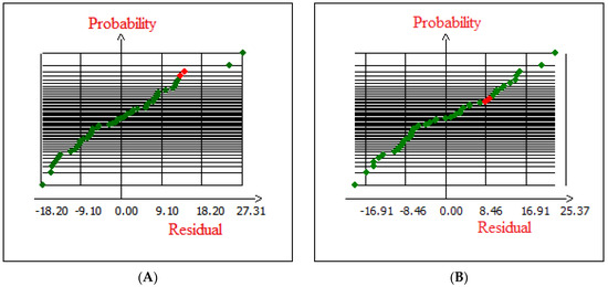 Normal probability distribution of residual (A) native cedar and (B) modified cedar.