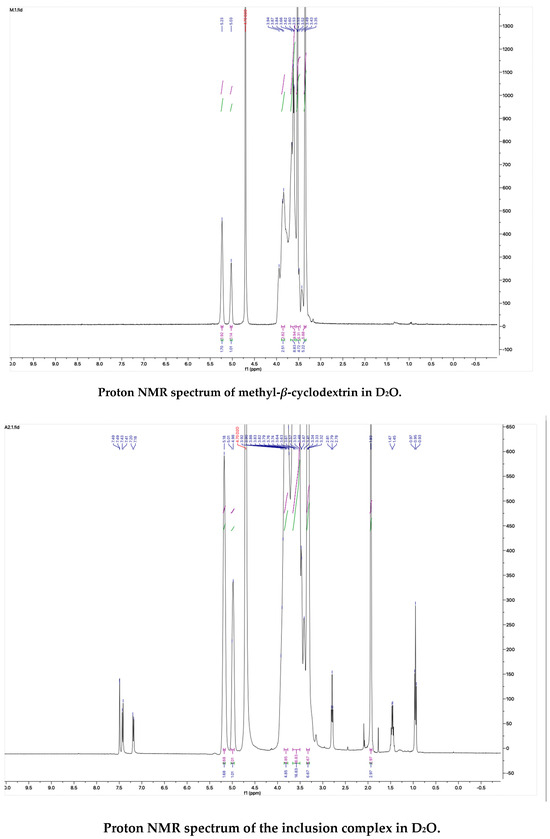 A variety of techniques such as FTIR, DSC, TAG, X-ray, and SEM have been used to confirm the formation of complexes in the solid state [27]. However, an increased water solubility can only be confirmed by its proton NMR spectrum in D2O.