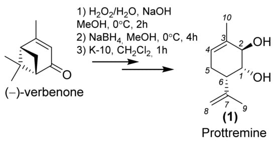 - Sivik, M.R.; Stanton, K.J.; Paquette, L.A. (1R,5R)-(+)-Verbenone of high optical purity. Org. Synth. 1995, 72, 57–61. [Google Scholar] [CrossRef]