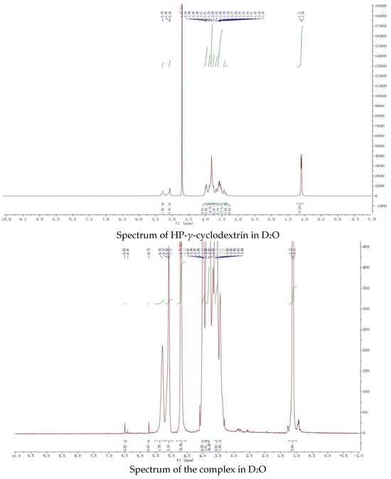 The proton NMR spectra of the solutions of HP-γ-cyclodextrin and the griseofulvin inclusion complex in D2O and the solutions of griseofulvin and its inclusion complex in DMSO-d6 were recorded at 400 MHz at room temperature.