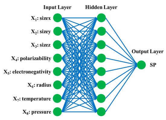 To establish the connection between MOFs and their SP values for Xe/Kr mixture, artificial neural network was employed. The objective was to develop an optimal model for predicting SP values for MOFs, utilizing textural characteristics of MOFs precursors, as well as temperature and pressure as inputs. The back propagation neural network (BPNN) model, a well-established ANN technology, has found extensive application in the analysis of the structure–activity relationship between MOFs and their performances [63,64,65,66].