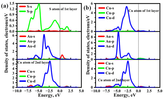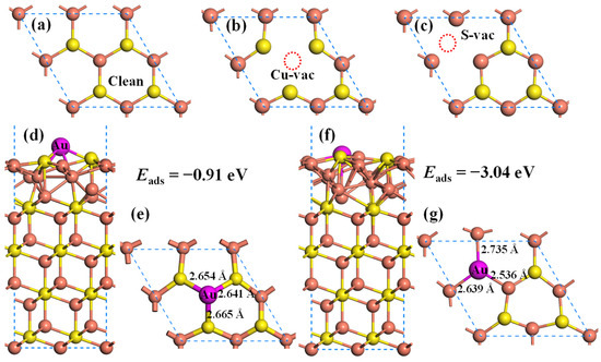 2.2. Effect of the Vacancy on the Au Adsorption of Cu2S(111)