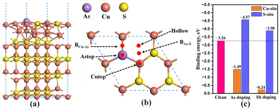 APA StyleHuang, H., Xiong, H., & Gan, L. (2023). Effect of Vacancy, As, and Sb Dopants on the Gold-Capturing Ability of Cu2S during Gold Collection in Matte Processes. Molecules, 28(21), 7390. https://doi.org/10.3390/molecules28217390