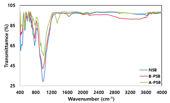 Figure 2). The basic FTIR patterns of NSB and PSB were N-containing bioligands (400–425 cm