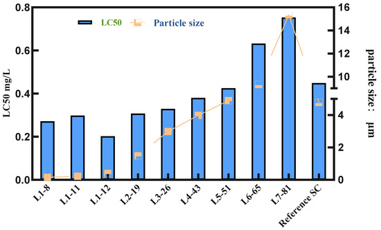 Relationship between the LC50 value and particle size.