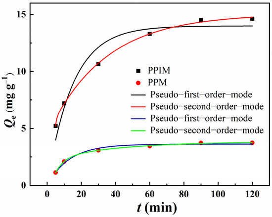 Adsorption kinetic curves and fitting model of PPIM and PPNM.